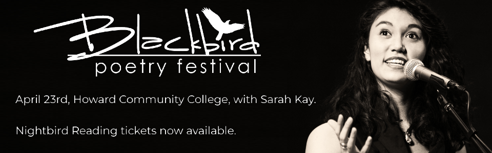 Sarah Kay headlines this year’s Blackbird Poetry Festival to be held on April 23rd, 2026, on the campus of Howard Community College (HCC). Now in its 18th consecutive year, the festival is a day devoted to verse, presented in partnership between HoCoPoLitSo and HCC’s Departments of Student Life and Humanities/World Languages, including a writing workshop, multiple readings, HCC’s poetry patrol, a recording session of HoCoPoLitSo’s writer-to-writer talk show The Writing Life, appearances from the Howard County Poet Laureate and Youth Poet Laureate, and much more.