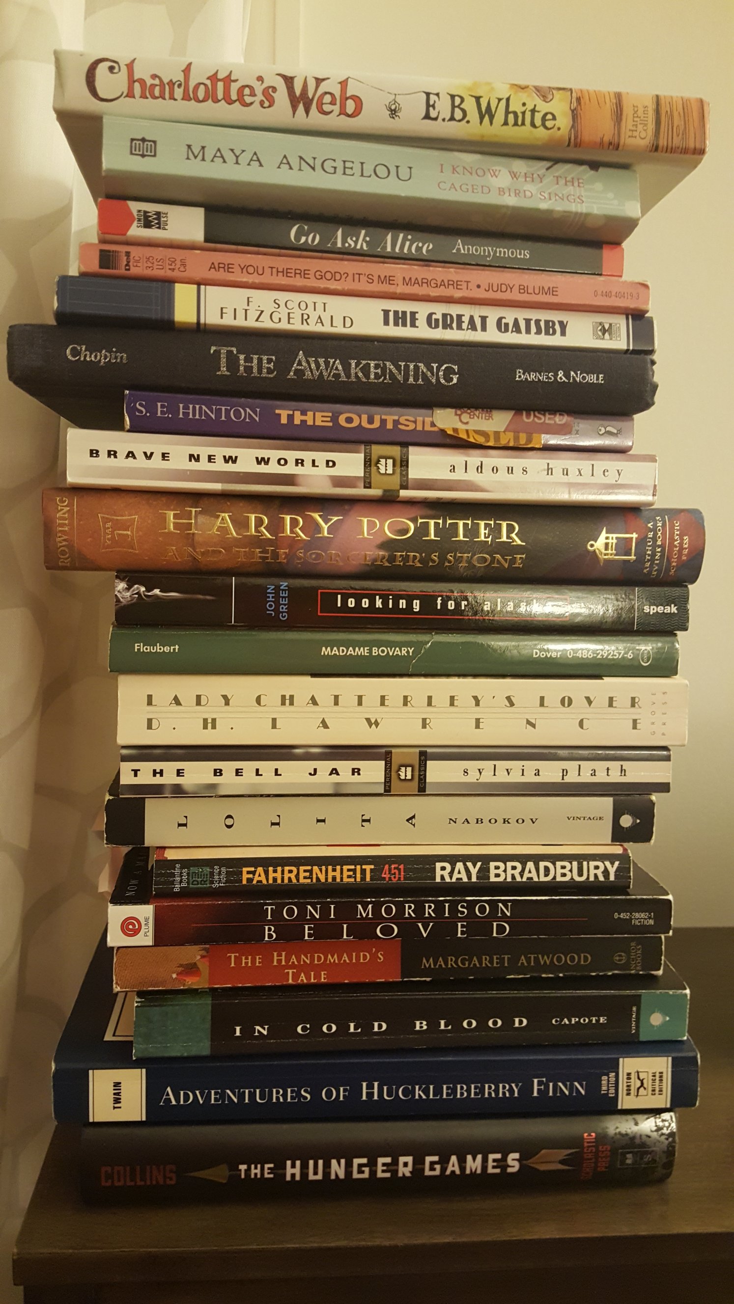 It was much more banned in the past, but definitely The Handmaid’s Tale! Even when I read it in the 8th grade (?), I remember being shocked at the story–not because of content, but because of so many similarities and so much truth. I thought how not so unrealistic this society was, and I still think that now. – Sylvia L. (English Professor at Howard Community College)