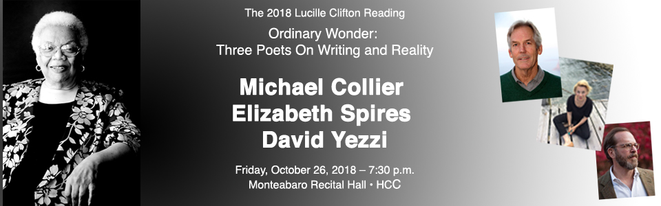HoCoPoLitSo’s autumn reading series is named for Lucille Clifton, our late artistic advisor, distinguished master poet, and dear friend. We seek to craft a fall event each year that honors the caliber of her poetry and contributions to poetry, but also honors her spirit of connection, inquiry, and social justice, and her love for life and learning. She always let us know if HoCoPoLitSo was up to the mark and we know we would have had her fullest approval and blessing for the season opening event with three master poets Michael Collier, Elizabeth Spires, and David Yezzi.