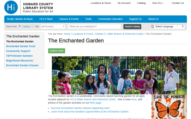 Signs, bearing excerpts from poems and novels that relate to the crops being grown, have been thrust into the garden plots, a lovely quarter-acre just outside the Ellicott City library branch. The vegetables and fruits grown in the garden by volunteers, from library teens to Master Gardeners, are harvested every week and donated to the Howard County Food Bank.