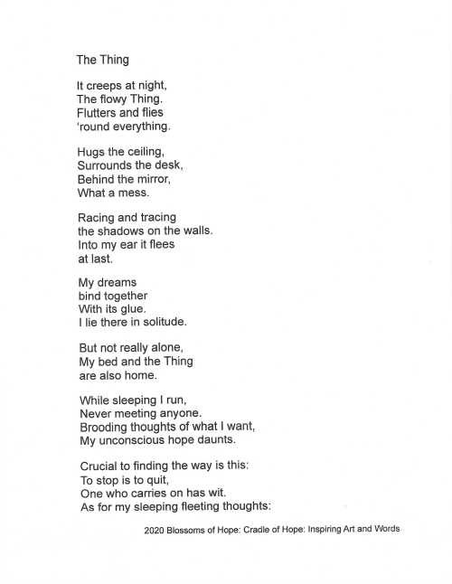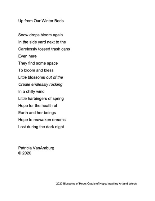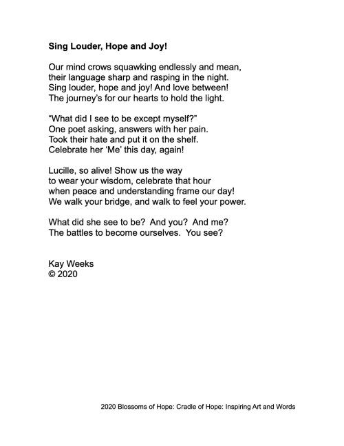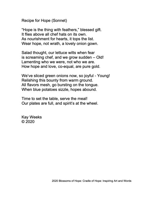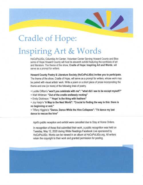When HoCoPoLitSo and the Columbia Art Center thought up the theme in December 2019 for the annual poetry and visual art collaboration and contest, Blossoms of Hope, we didn’t really understand how much hope we were going to need.