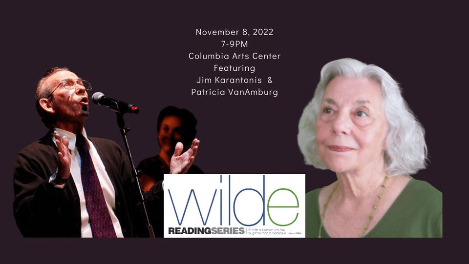 Join Wilde Readings on Election Night for November Wilde Readings — live and in person at the Columbia Art Center. Featured authors are Jim Karantonis and Patricia VanAmburg. Laura Shovan is your host. Please spread the word – bring your friends, family, and students. All are welcome. We encourage you to participate in the open mic. Please prepare no more than five minutes of performance time/two poems. Sign up in advance by calling the Columbia Arts Center, or when you arrive. The number is 410-730-0075. Light refreshments will be served. Books by both featured authors and open mic readers will be available for sale.