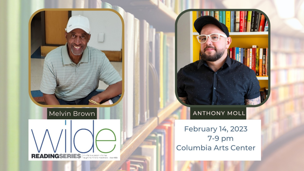 We welcome you to our February edition of the Wilde Readings Series with Melvin Brown and Anthony Moll, hosted By Linda Joy Burke. Join us at the Columbia Art Center (Columbia Art Center 6100 Foreland Garth Columbia, MD 21045) on Tuesday, February 14th 7-9 PM. Please spread the word – bring your friends, family, and students.