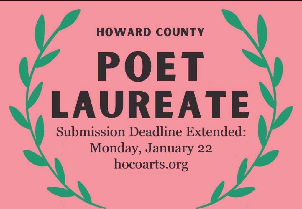 Out of consideration for the year-end holidays, the deadline for application to the newly-created position of Howard County Poet Laureate has been extended to Monday, January 22nd, at 11:59 p.m. Don’t miss your chance to be the next, and first-ever Poet Laureate to our local community!