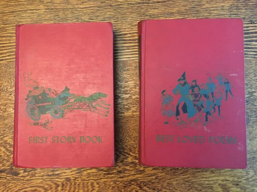 Those books, especially Best Loved Poems and First Story Book, included gems like “Wynken, Blinken, and Nod” and “The Velveteen Rabbit” and “Stopping by Woods on a Snowy Evening.” And when I had children, I spent seventeen years reading out loud, from the red books and You Can Name One Hundred Trucks through all nine Harry Potters and into Something Wicked This Way Comes.