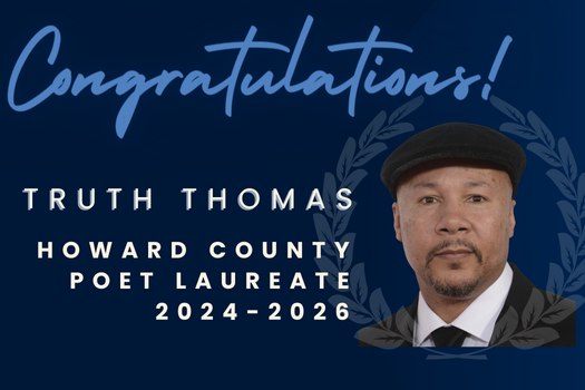 “We are incredibly fortunate to have such an active and vibrant literary arts community in Howard County. From our schools and gathering places, to our energized Downtowns and Main Streets, the arts are the heartbeat of our county, breathing life and meaning into our everyday lives,” said Ball. “I am thrilled to have the talented, terrific, transformative Truth Thomas serve as Howard County’s very first Poet Laureate. He brings a wealth of knowledge, experience, passion and creativity to this new role, and I am confident as Poet Laureate, he will elevate poetry in the consciousness of Howard County residents.”