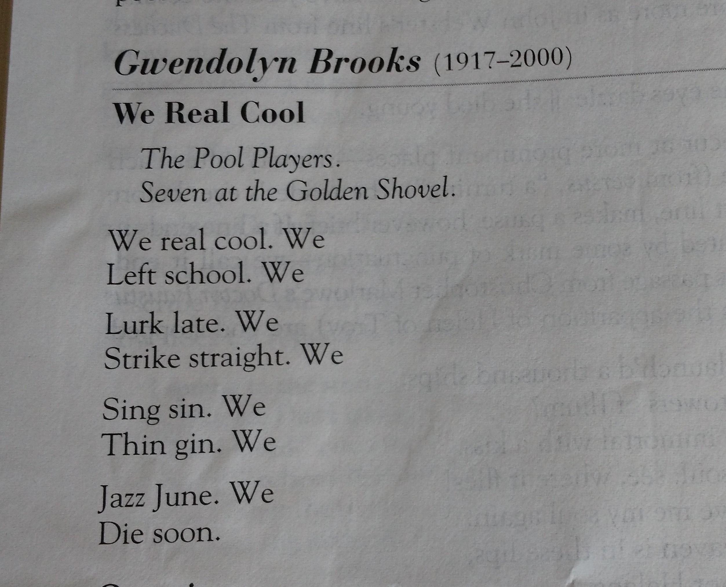 Let’s take “We Real Cool” by Gwendolyn Brooks, for example.